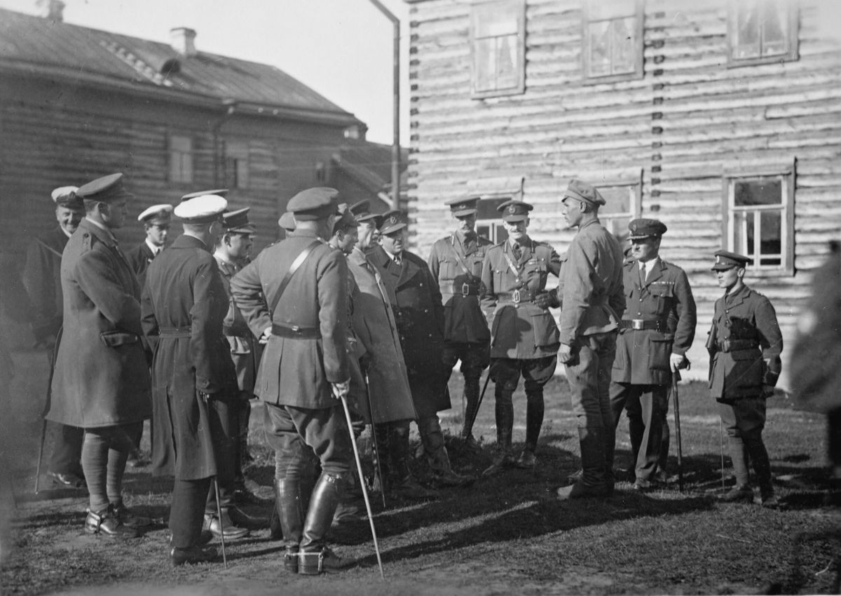 Q 16147-Lord Rawlinson interrogating a Bolshevik prisoner on the railway front. North Russia, September 1919 ← Previous Next →