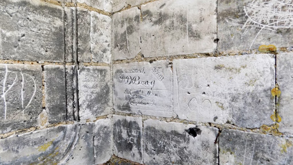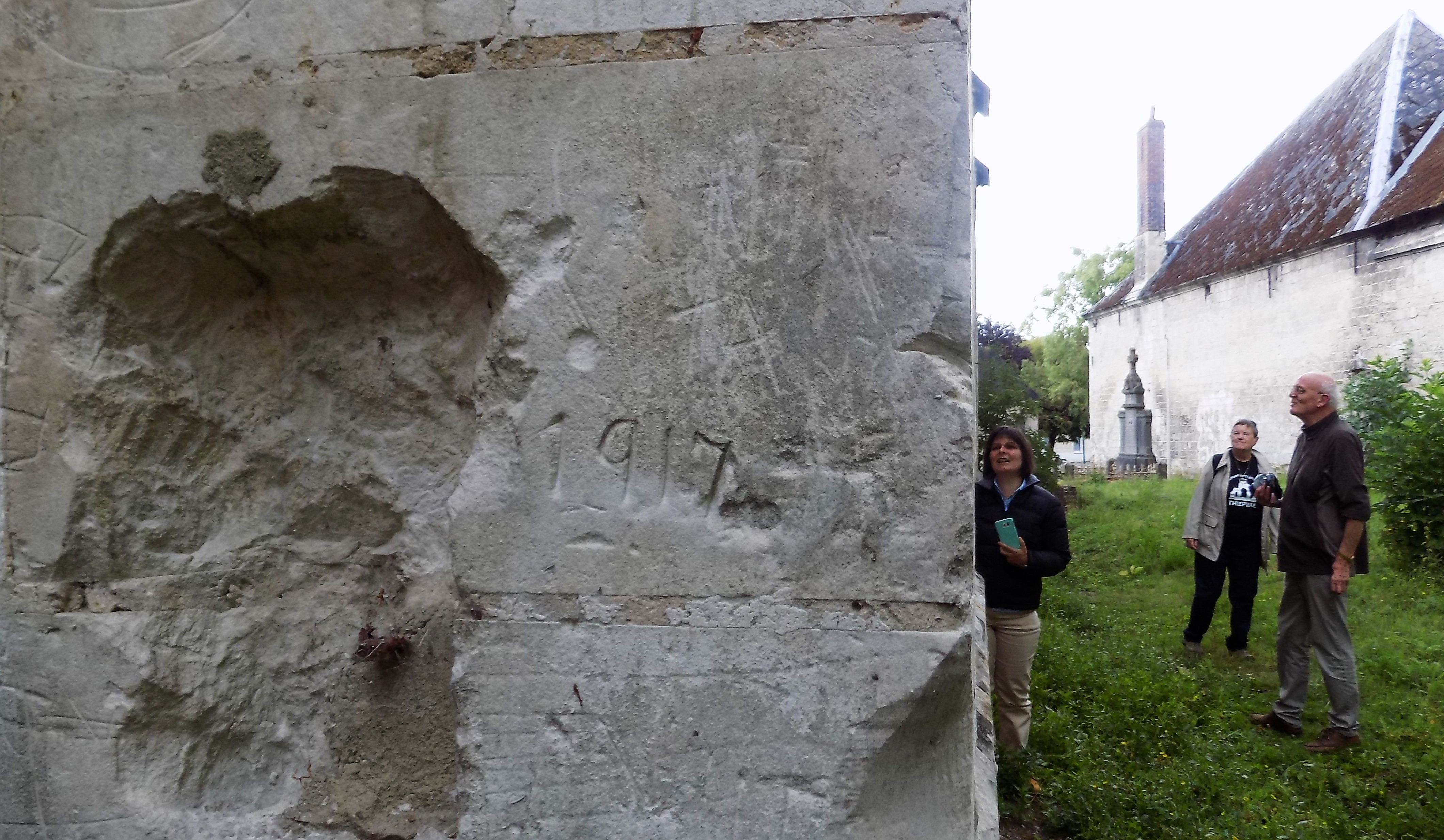Graffiti left by British and Canadian soldiers on Ecoivres church still bears witness to its role during 1914-18.