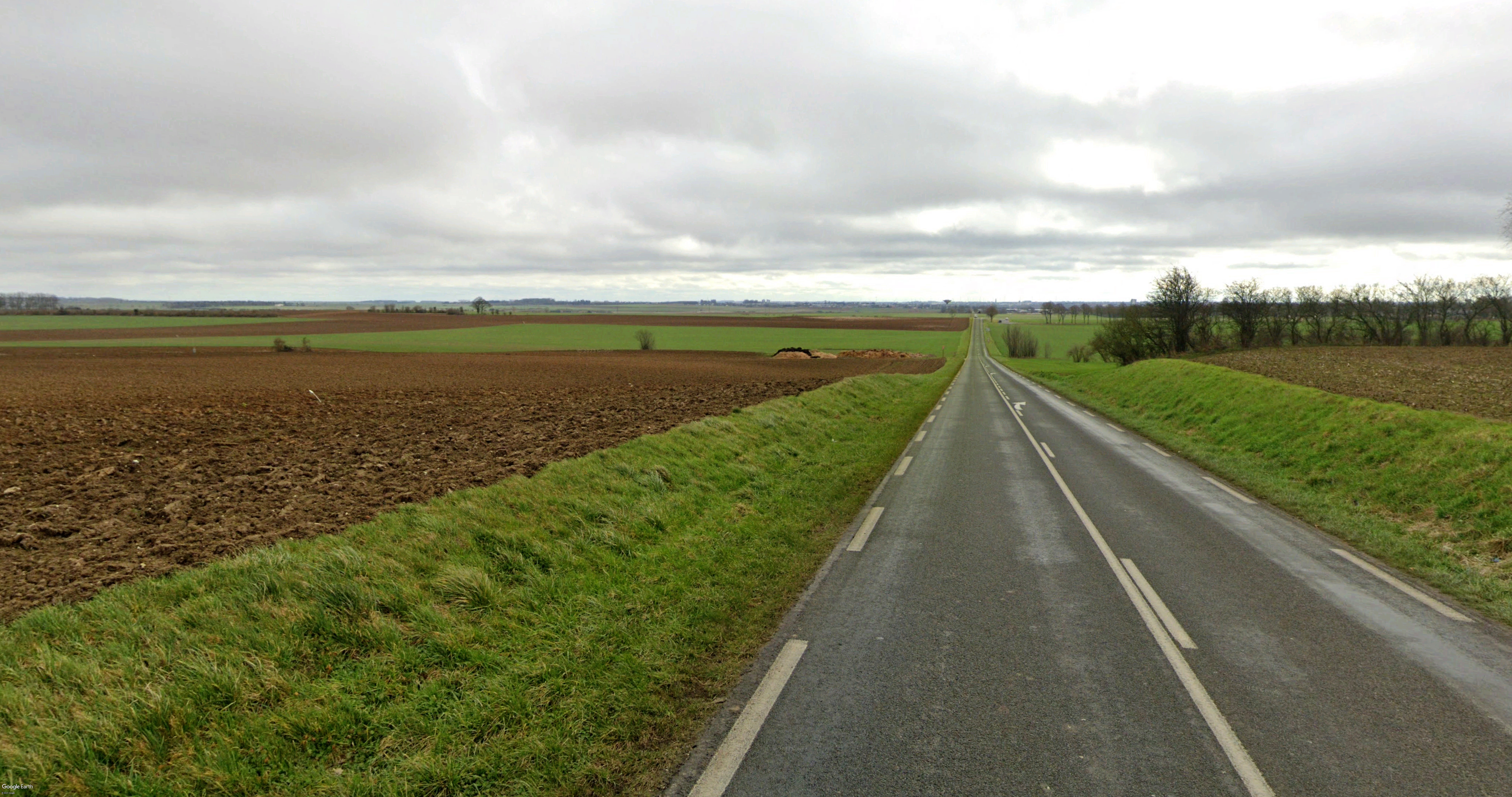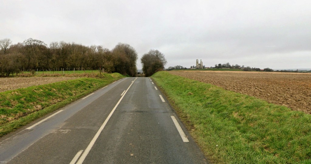 The return journey to Ecoivres, with the ruined abbey of Mont St. Eloi a well-known landmark. (Google Earth).